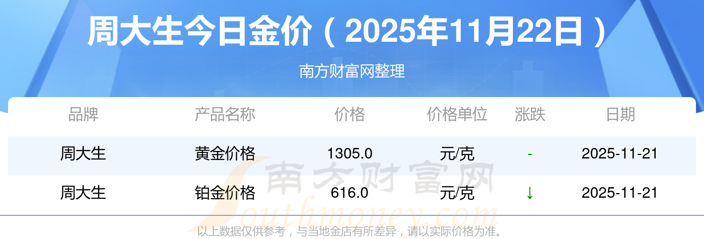 以上数据仅供参考,与当地品牌商、金店、企业及银行营业厅报价有所差异,依产品不同需另附工费,请以实际报价为准。本站对价格等不作任何保证或承诺,请自行核实相关内容,因此所引起的后果与本站无关。