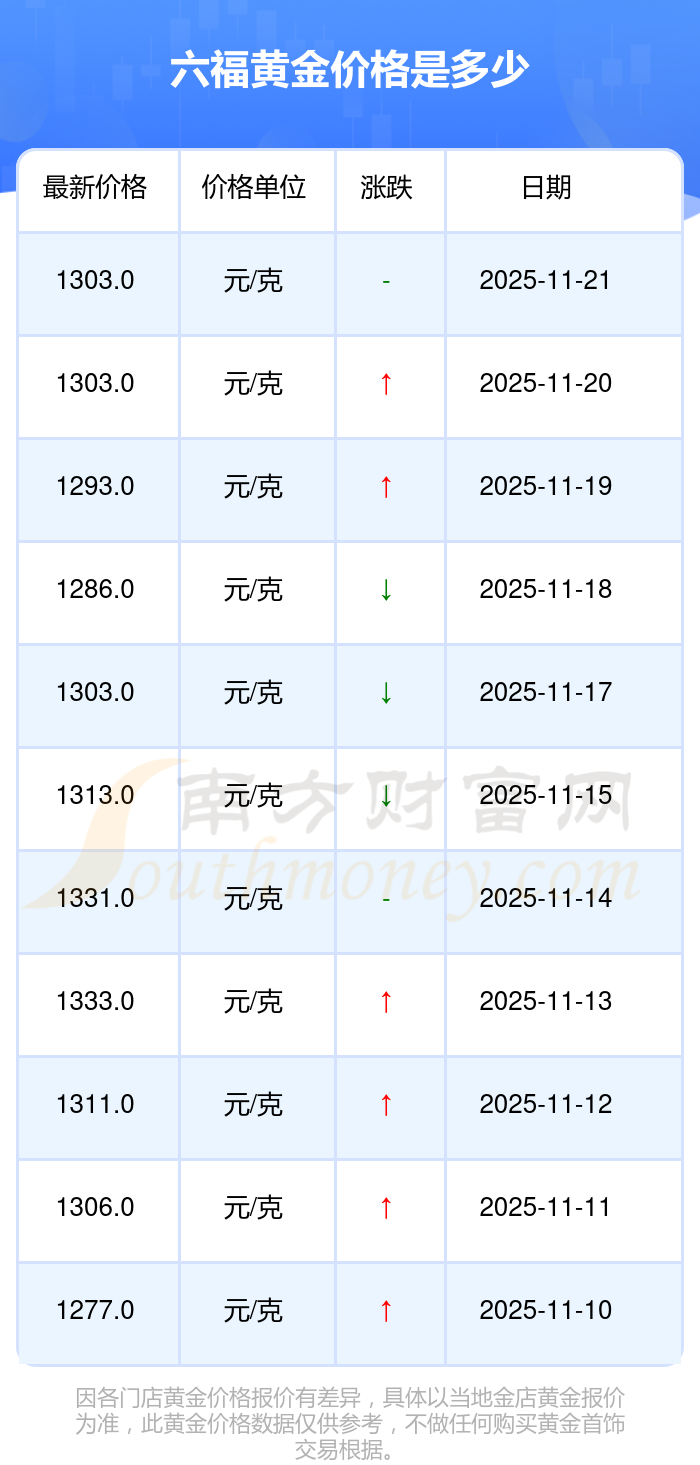 以上数据仅供参考,与当地品牌商、金店、企业及银行营业厅报价有所差异,依产品不同需另附工费,请以实际报价为准。本站对价格等不作任何保证或承诺,请自行核实相关内容,因此所引起的后果与本站无关。