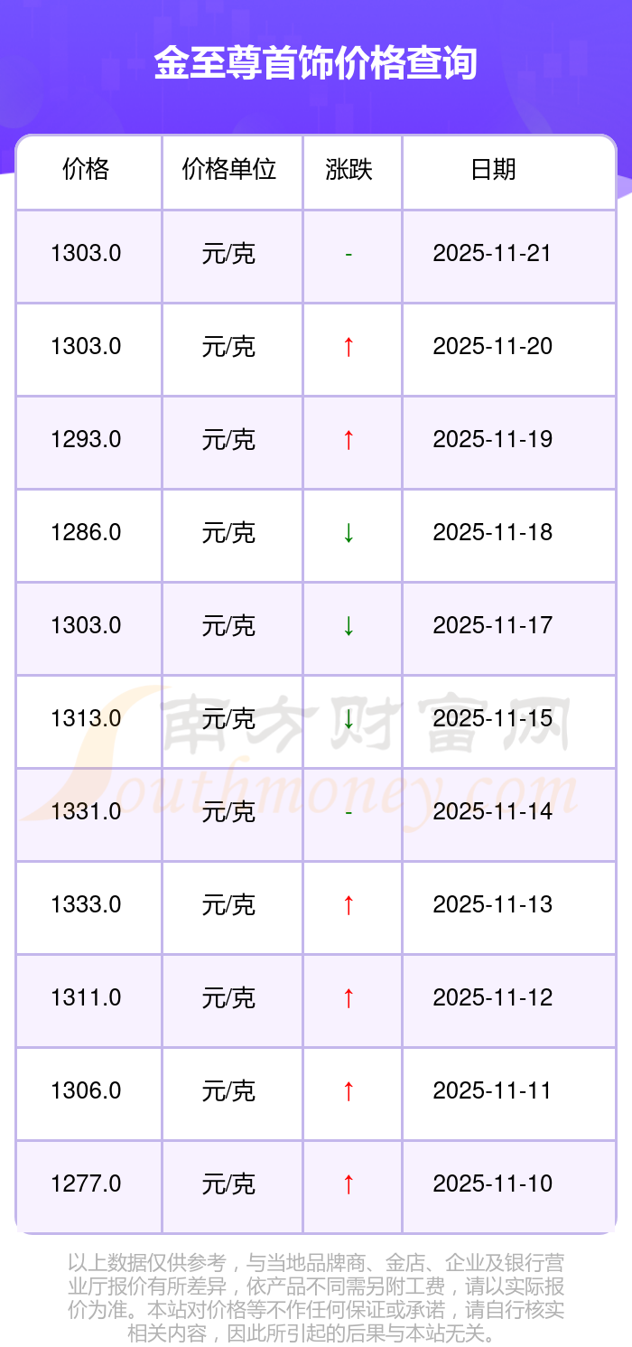 金至尊今日首饰的最新市场行情价为1303.0元/克。