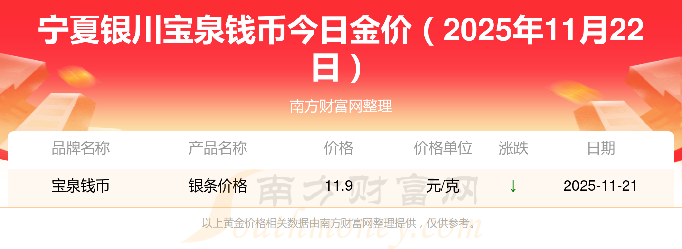 今天黄金价格多少一克_2025年11月22日宁夏银川宝泉钱币黄金今日最新价格表公布,随小编来了解一下详情。