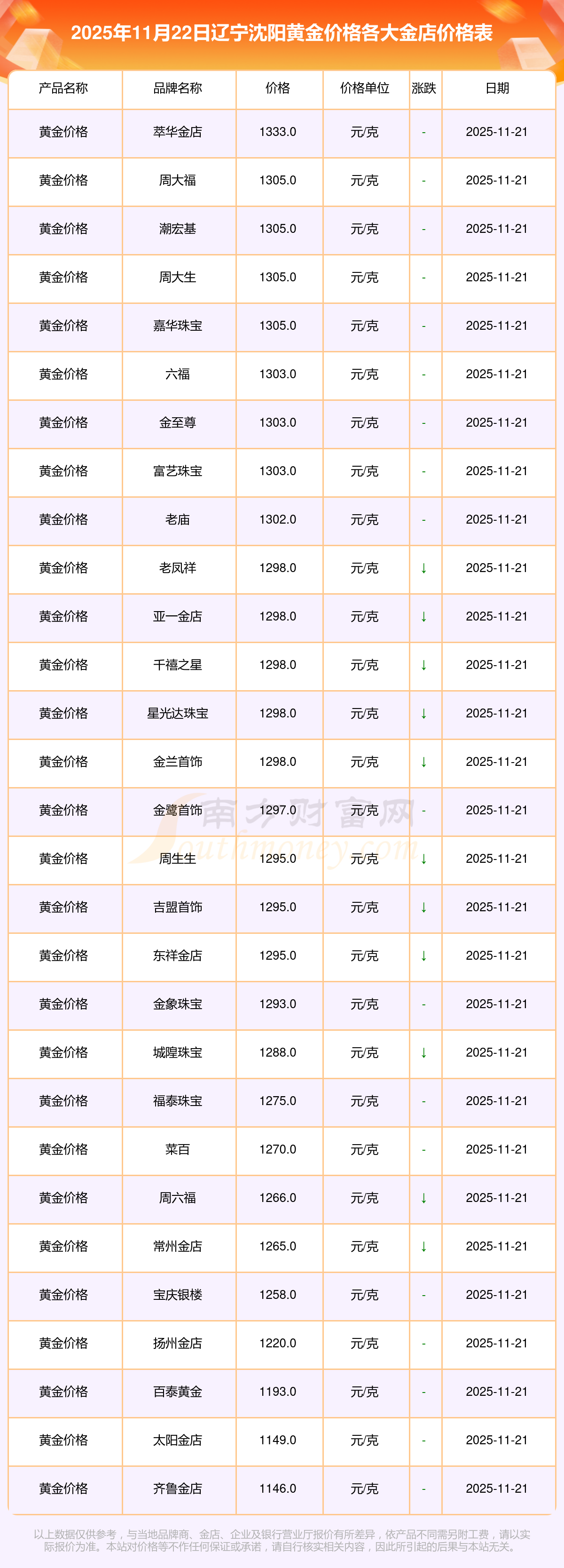 一、 辽宁沈阳各金店黄金价格多少钱1克?辽宁沈阳各金店黄金价格最新详情