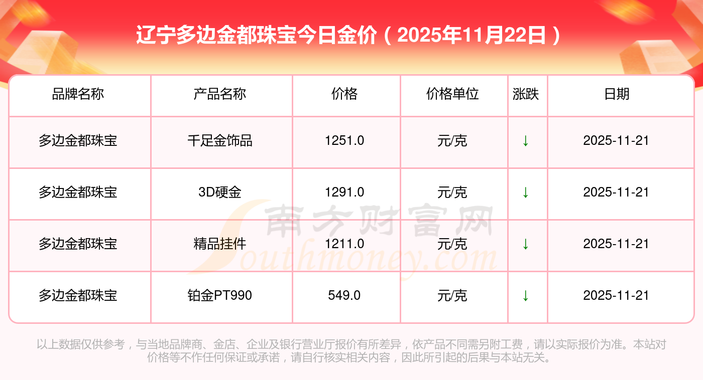 辽宁多边金都珠宝目前金价,一克的标价是多少?