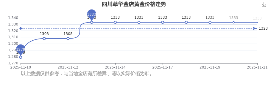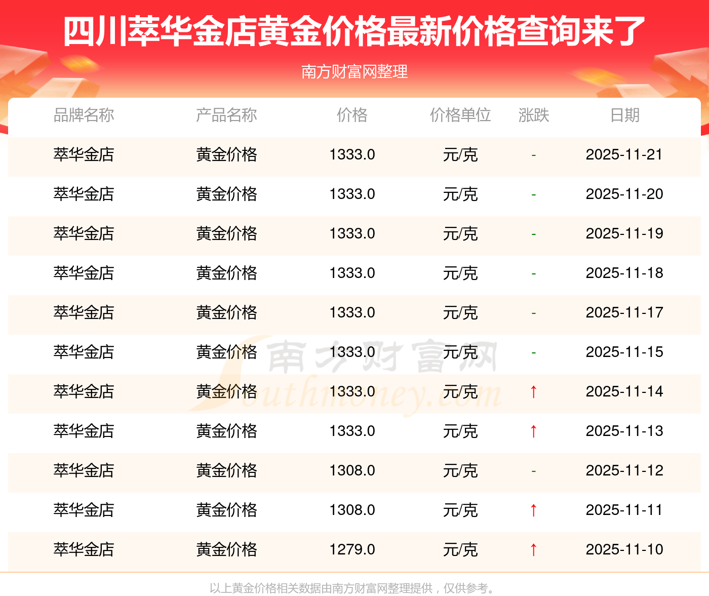 2025年11月22日这一天,四川萃华金店的黄金价格以 1333.0元/克的价格售卖。
