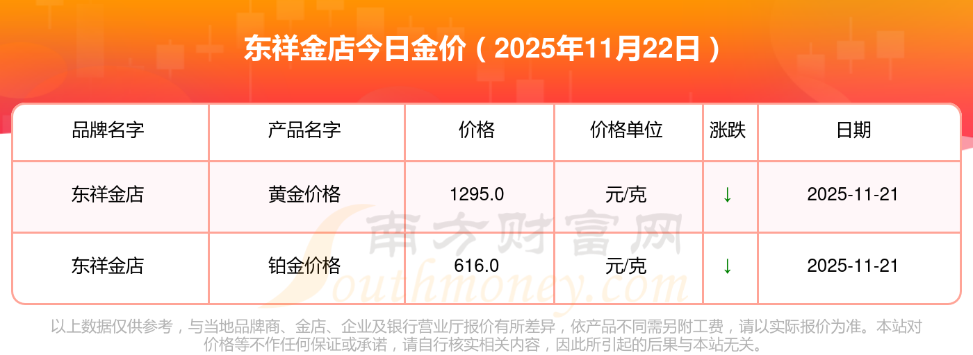 以上数据仅供参考,与当地品牌商、金店、企业及银行营业厅报价有所差异,依产品不同需另附工费,请以实际报价为准。本站对价格等不作任何保证或承诺,请自行核实相关内容,因此所引起的后果与本站无关。