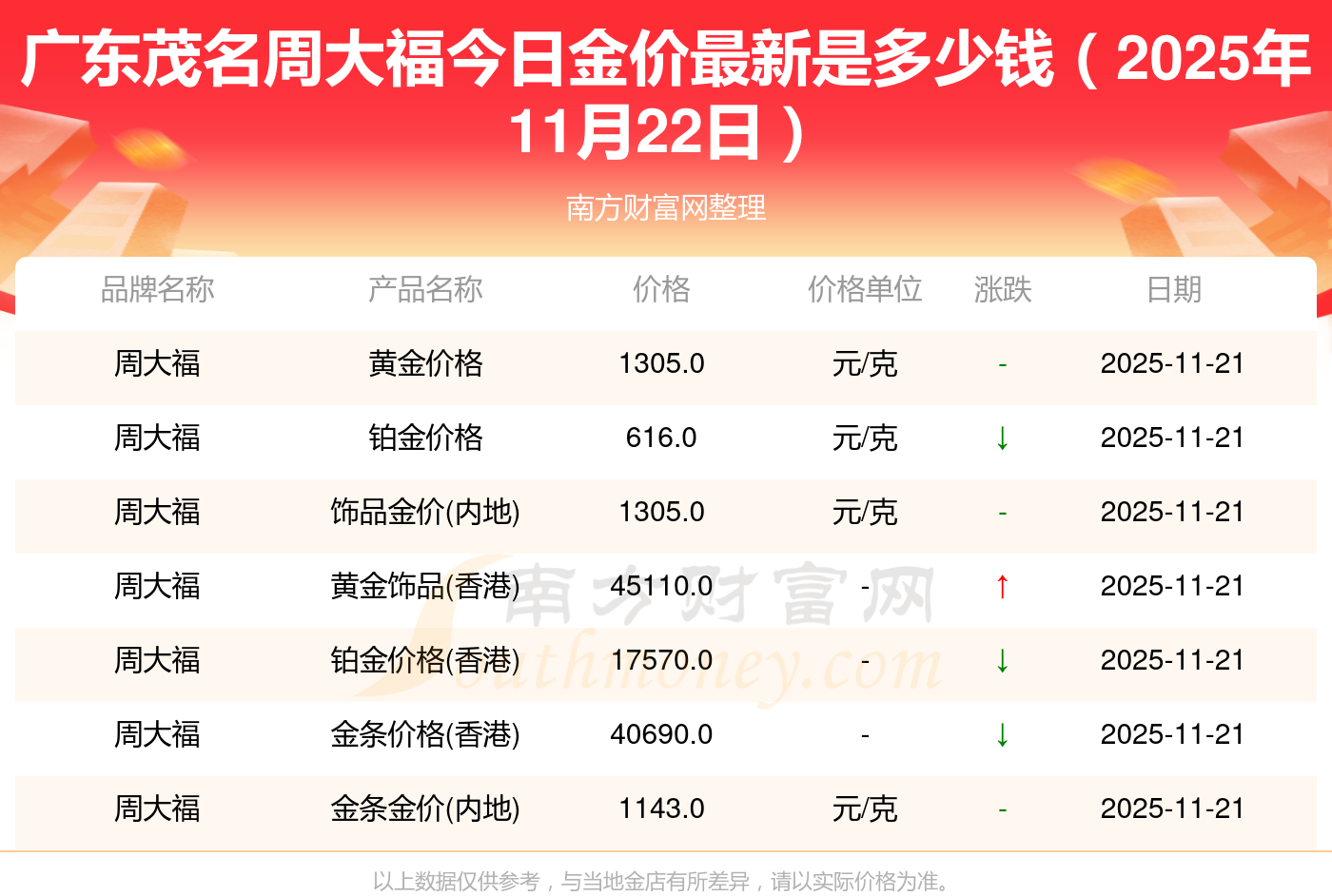 广东茂名周大福金价今日价格最新_广东茂名周大福黄金多少钱一克2025年11月22日,随小编来了解一下详情。
