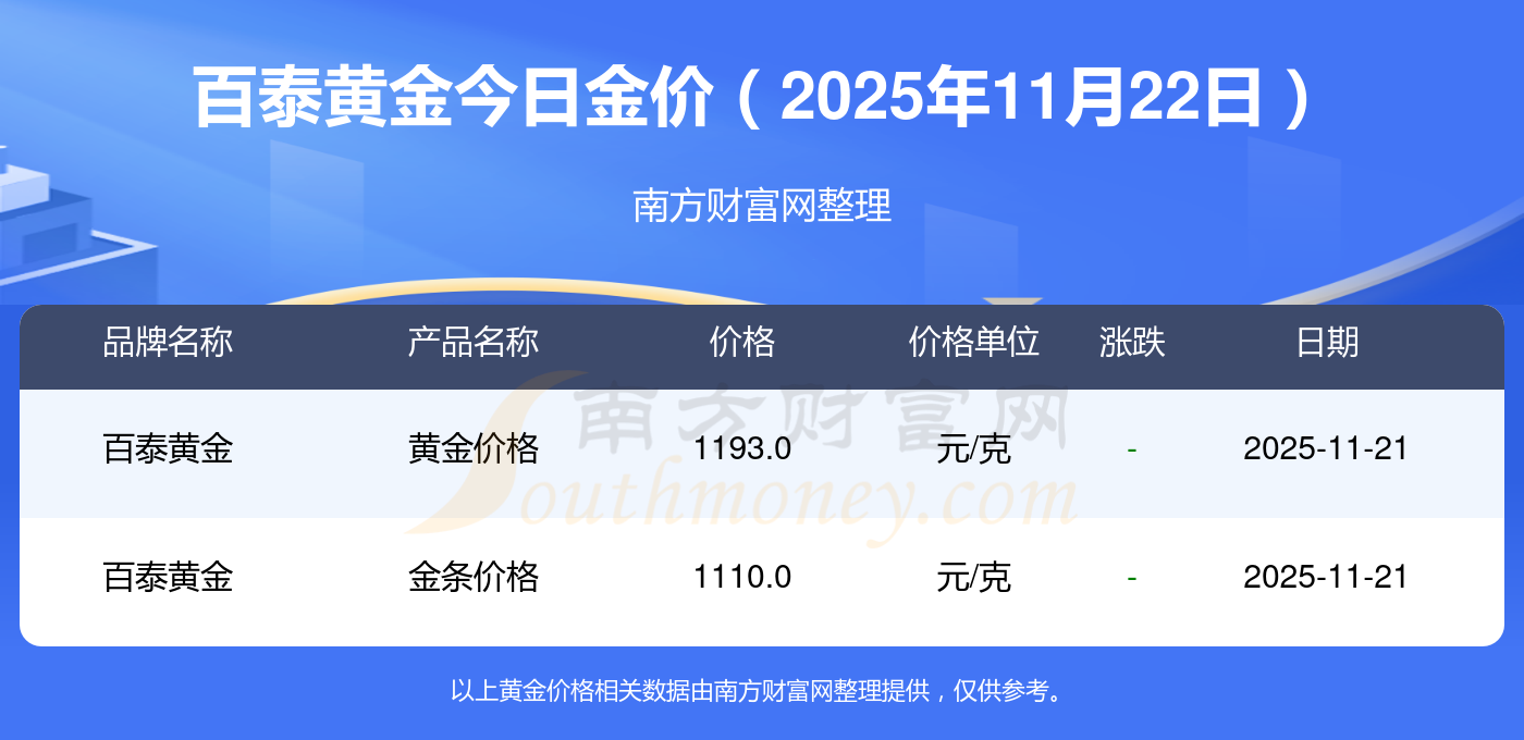 百泰黄金现在金价多少钱一克?百泰黄金今天金条价格多少一克?最新百泰黄金查询,2025年11月22日百泰黄金金条价格现在每克多少钱?最新百泰黄金金条价格报价公布,一起来看看吧!
