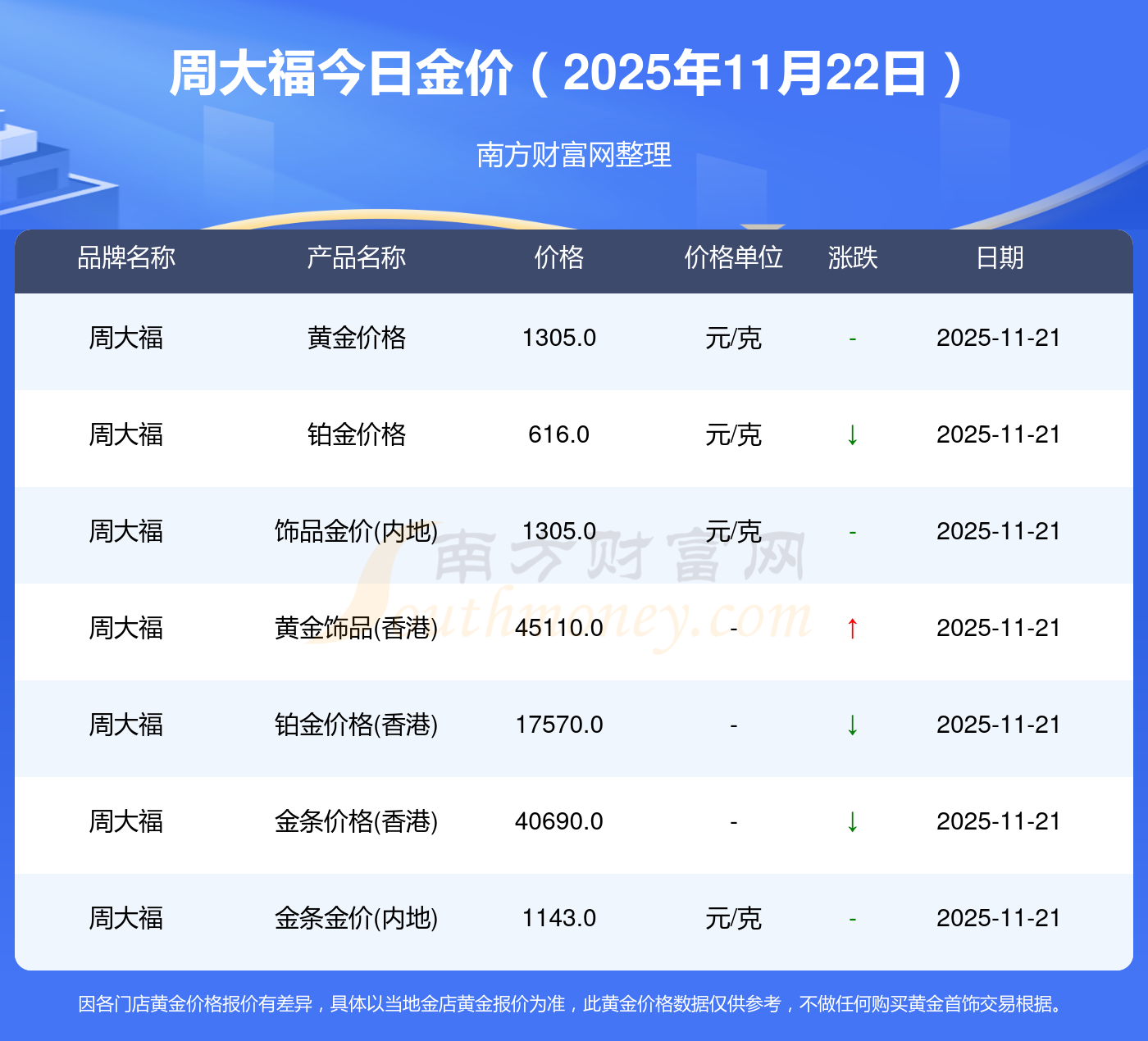 2025年11月22日周大福金条多少钱1克 现在滨州周大福黄金价格查询