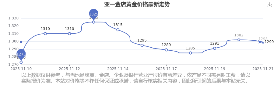 1298.0元/克成为亚一金店今日 黄金价格的最新交易的价格。