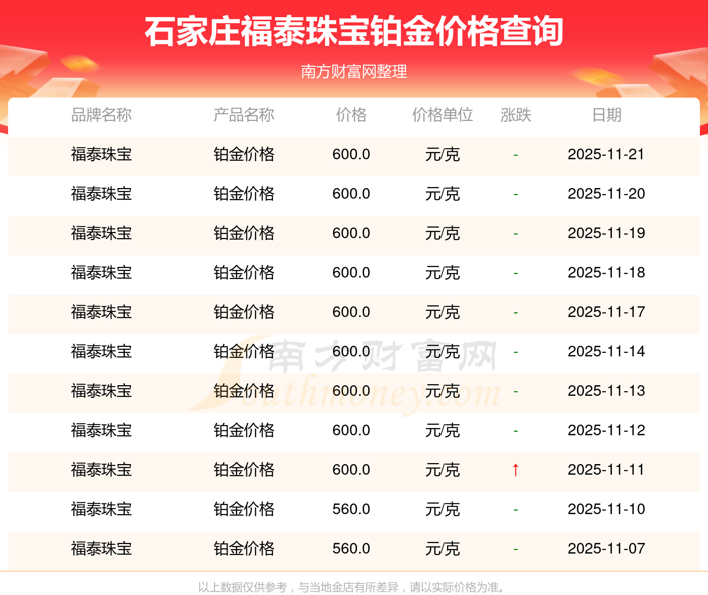 以上数据仅供参考,与当地金店有所差异,请以实际价格为准。