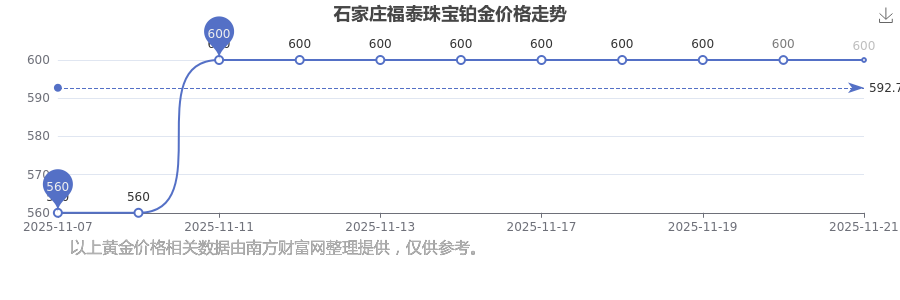 今日石家庄福泰珠宝铂金价格:600.0元/克。
