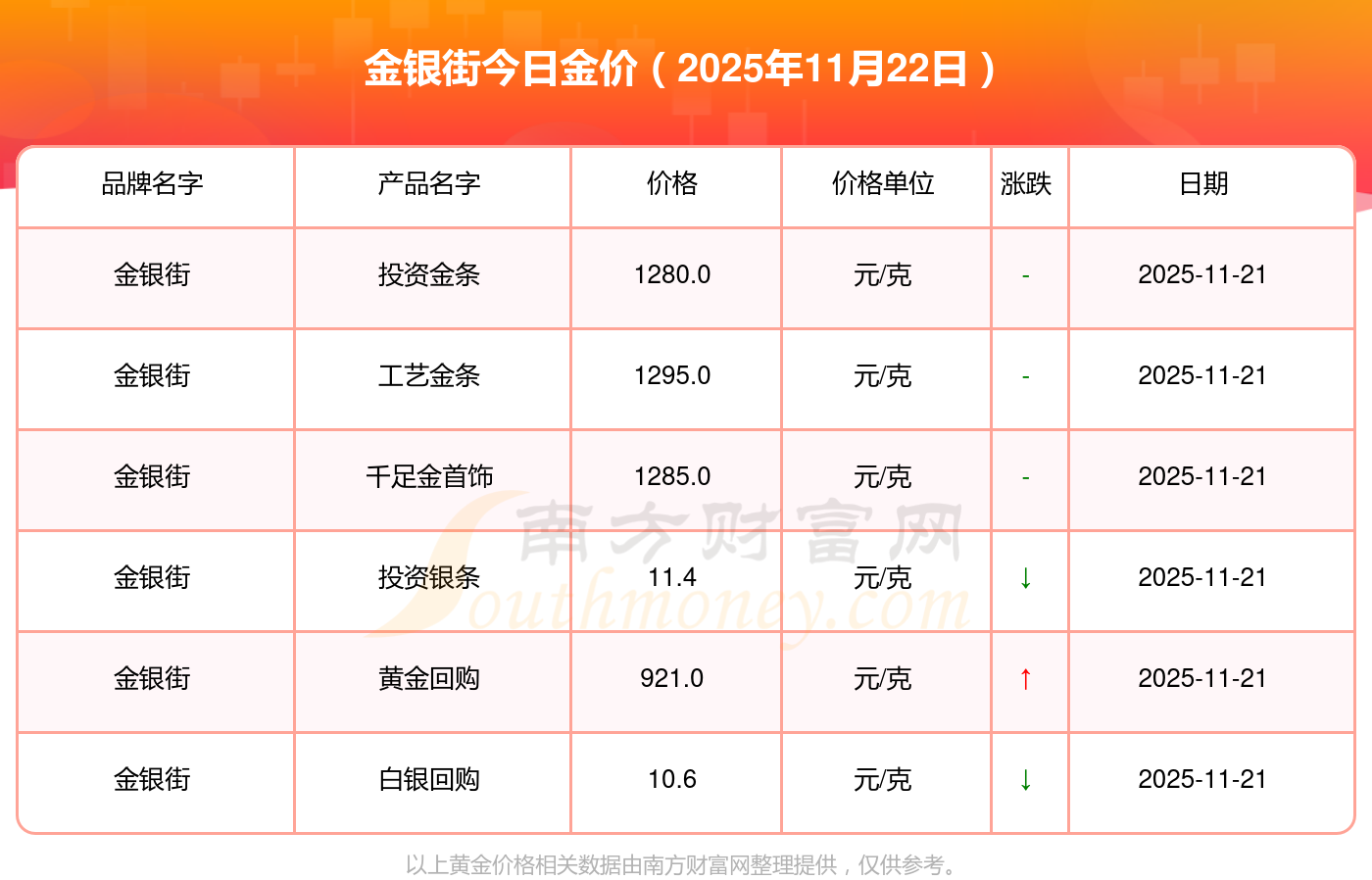 以上数据仅供参考,与当地金店有所差异,请以实际价格为准。