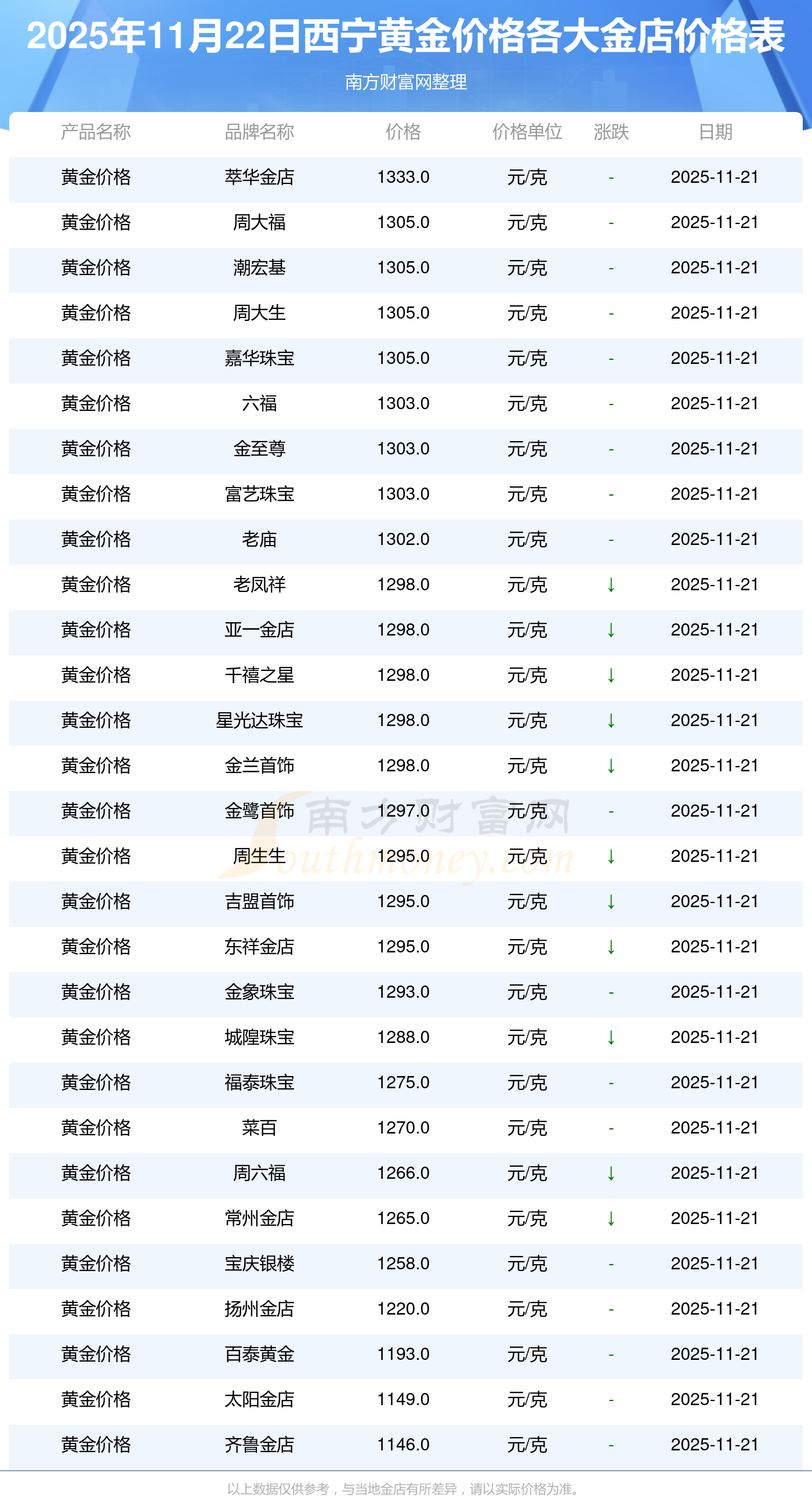 一、西宁各金店黄金价格表最新是多少钱,黄金价格今天多少一克,今日黄金多少一克最新价格表