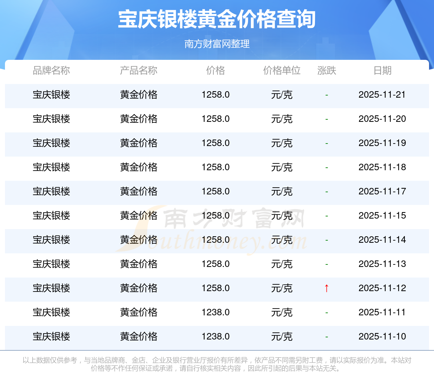 今日黄金价格查询_现在金价黄金一克多少钱,黄金价格是多少钱一克?一般而言,一克黄金的售价是多少左右?宝庆银楼 黄金价格在今日的最新价格显示为1258.0元/克。