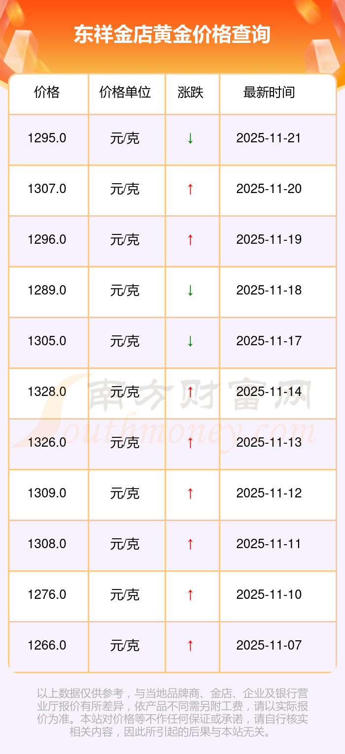 今日东祥金店黄金价格:1295.0元/克。