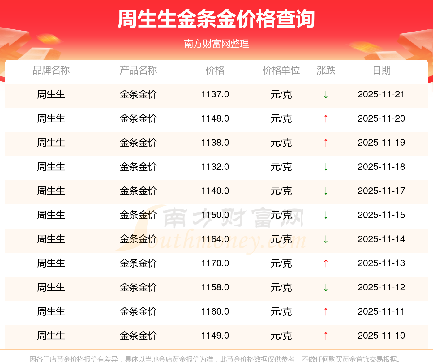 以上数据仅供参考,与当地金店有所差异,请以实际价格为准。
