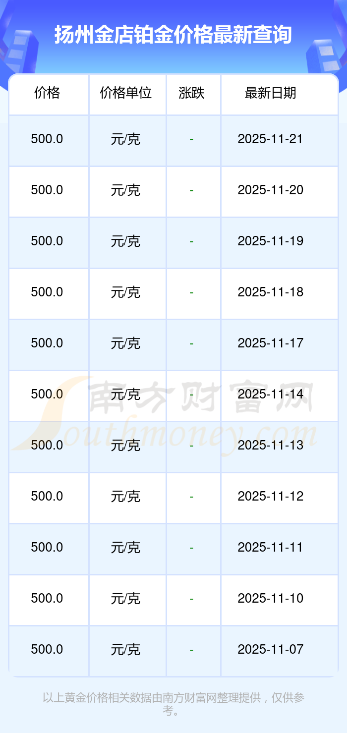 目前扬州金店 铂金价格的价格,今日最新为500.0元/克。