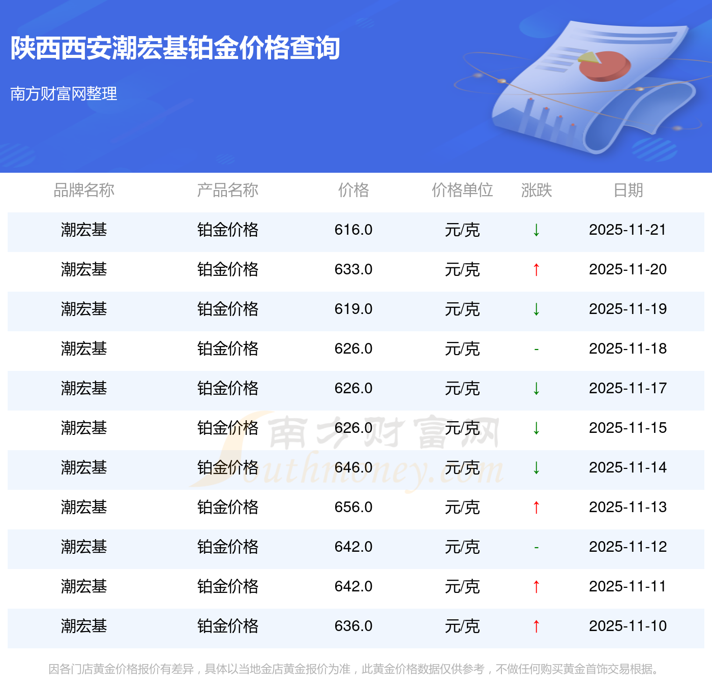 616.0元/克,此乃陕西西安潮宏基于 2025年11月22日铂金价格的挂牌价格。