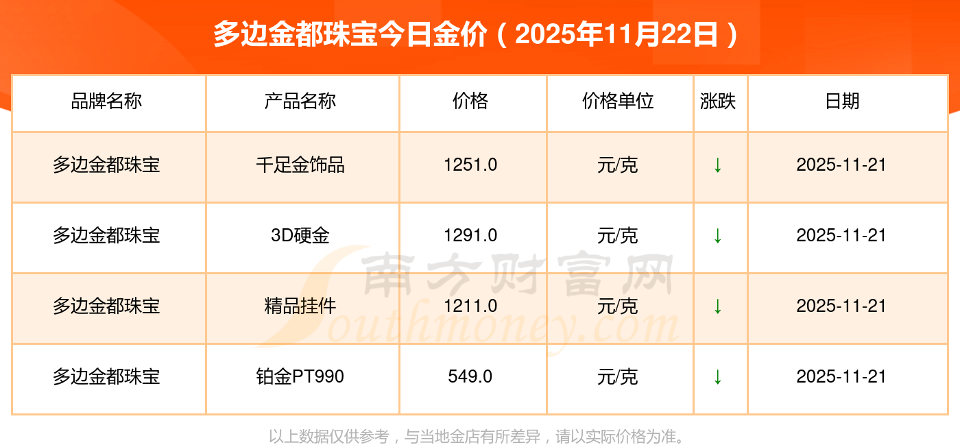 多边金都珠宝今天的黄金价值几何?详情如下:
