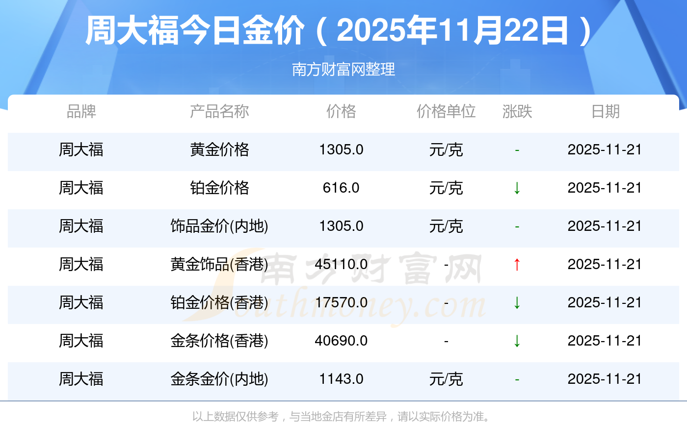 现在周大福黄金价格是多少钱1克_2025年周大福今日金价是多少钱一克,最新周大福查询,2025年11月22日周大福铂金价格现在每克多少钱?最新周大福铂金价格报价公布,一起来看看吧!