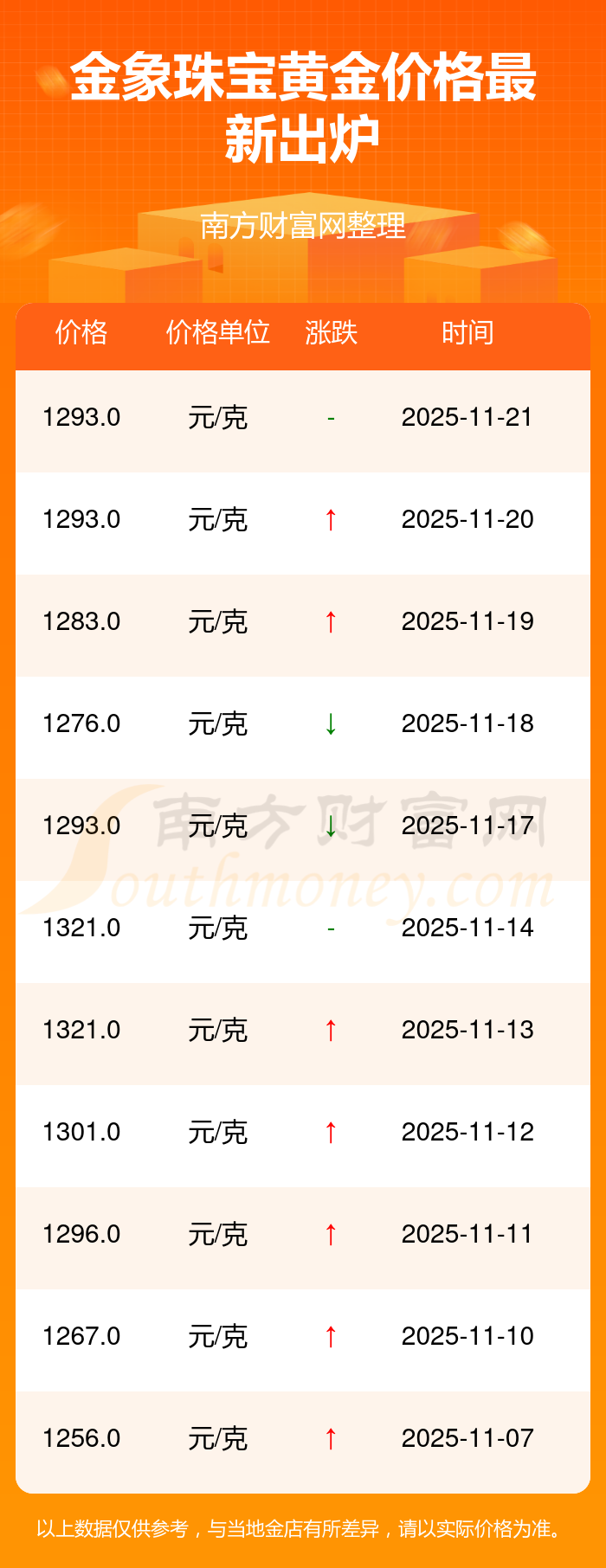 以上数据仅供参考,与当地金店有所差异,请以实际价格为准。