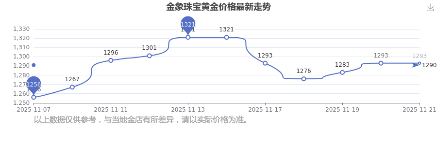 金象珠宝 黄金价格于今日的最新挂牌价为1293.0元/克。