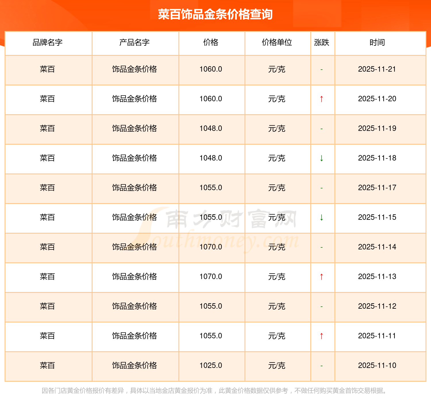 今日菜百饰品金条价格的价格是1060.0元/克。