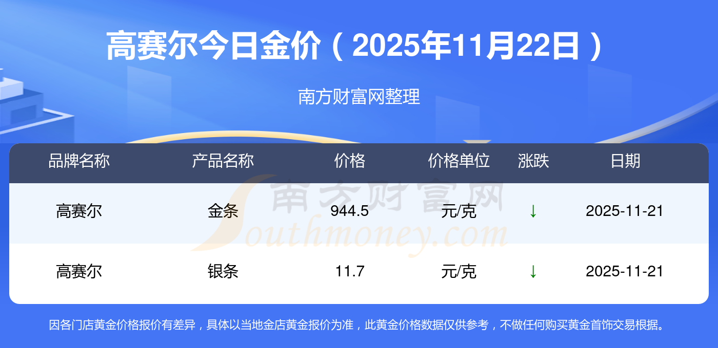 高赛尔今日金价的具体数字是怎样的?数据来了:黄金价格1305.0元/克,铂金价格616.0元/克,饰品金价(内地)1305.0元/克,黄金饰品(香港)45110.0,铂金价格(香港)17570.0,金条价格(香港)40690.0,金条金价(内地)1143.0元/克,黄金价格1298.0元/克,铂金价格600.0元/克,足金价格1298.0元/克,黄金价格1266.0元/克。