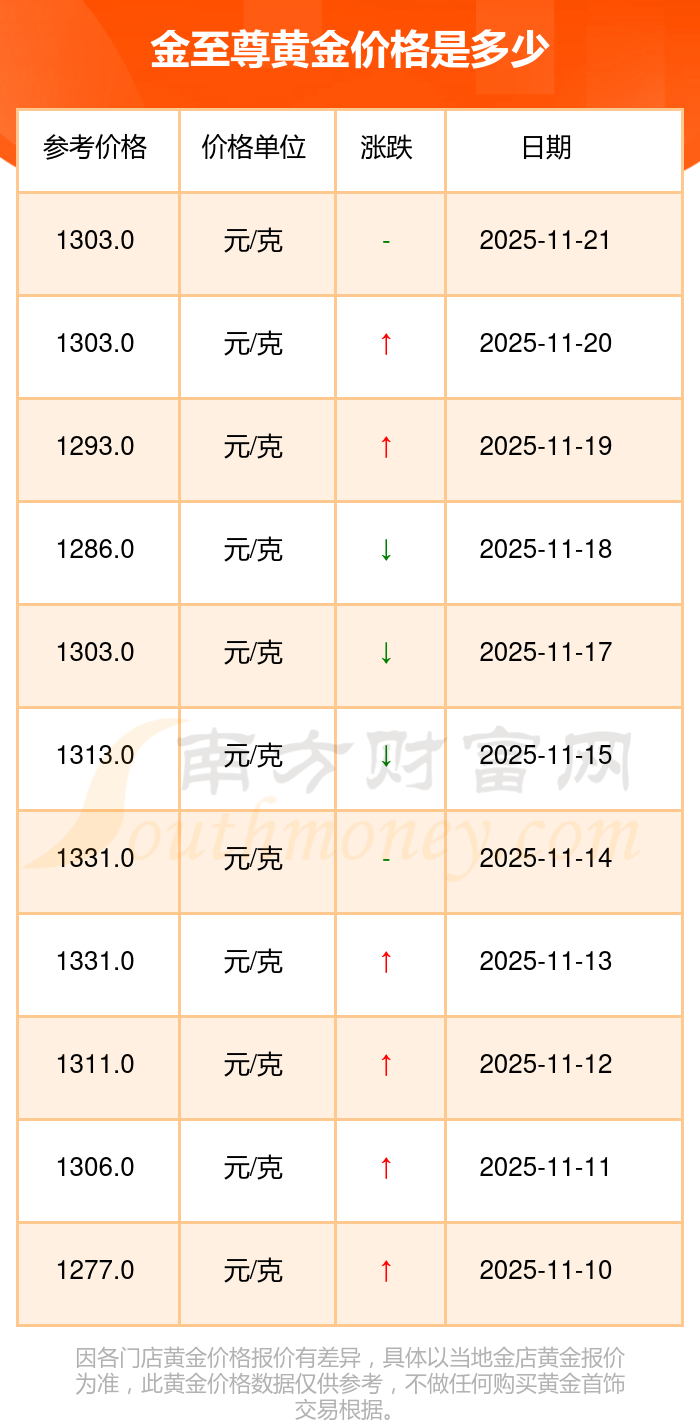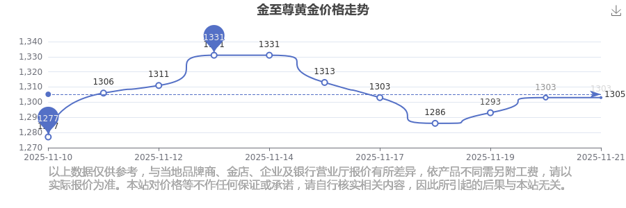 据了解,金至尊今日黄金价格为1303.0元/克。