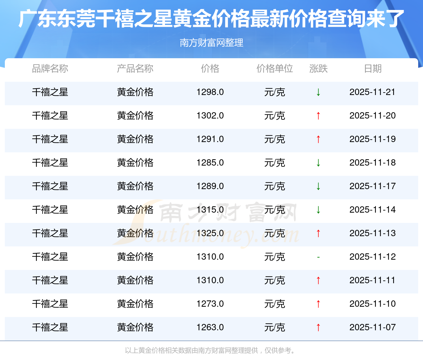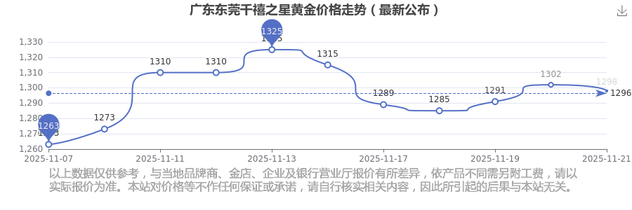 广东东莞千禧之星现在黄金价格每克多少?今日一克黄金的价格行情如何?今日广东东莞千禧之星黄金价格查询,今日广东东莞千禧之星黄金价格的价格为1298.0元/克。