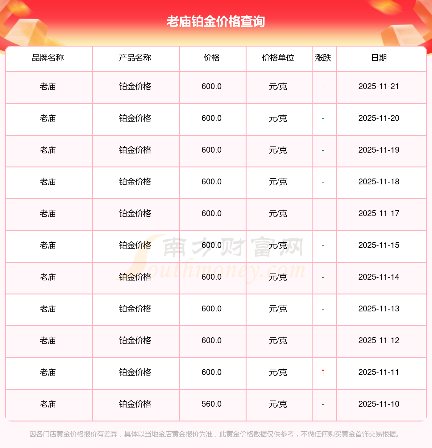 600.0元/克成为老庙今日 铂金价格的最新交易的价格。