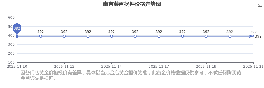 今日(2025年11月23日)南京菜百摆件价格为392.0元/克。