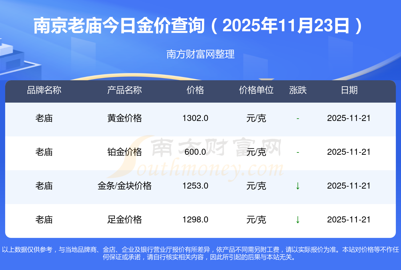 以上数据仅供参考,与当地金店有所差异,请以实际价格为准。