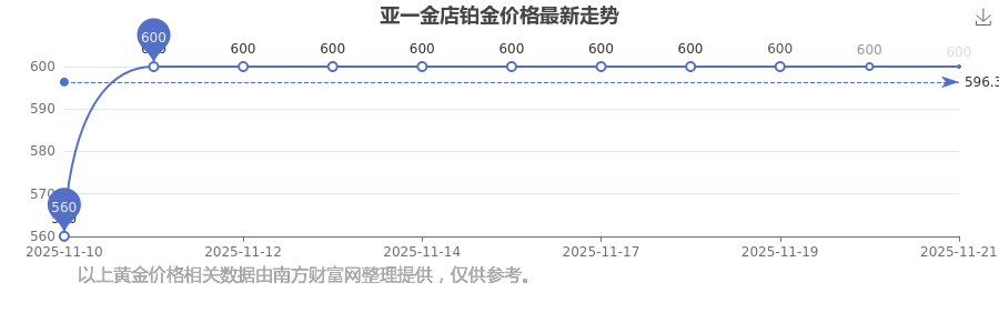 今日亚一金店铂金价格的价格是600.0元/克。