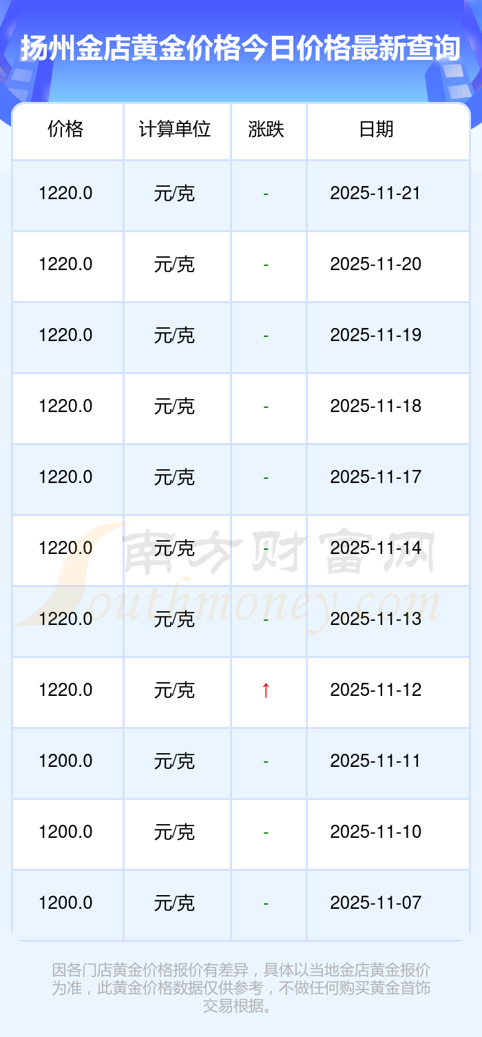 今天黄金价格是多少?现在黄金一克的价钱是怎样的?作为优良导电导热材料的黄金,具有良好的导热特性。它在电子工业中的特殊电路设计中常被应用,因为化学稳定性高、抗氧化性强,能制作高精度电子元件。扬州金店 黄金价格于今日的最新挂牌价为1220.0元/克。