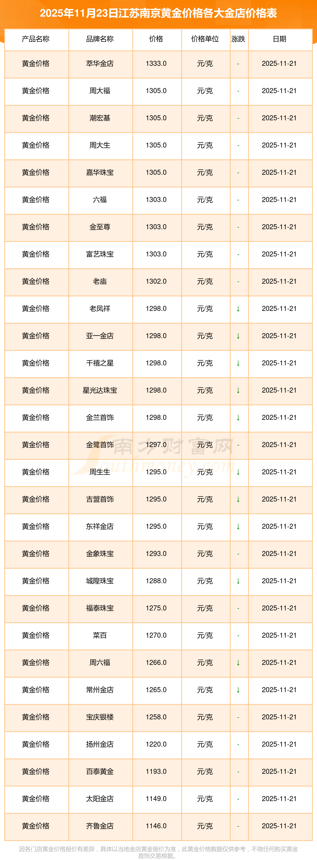 一、江苏南京各金店黄金价格表最新是多少钱,今日每克黄金的价值是多少,今日黄金多少一克最新价格表