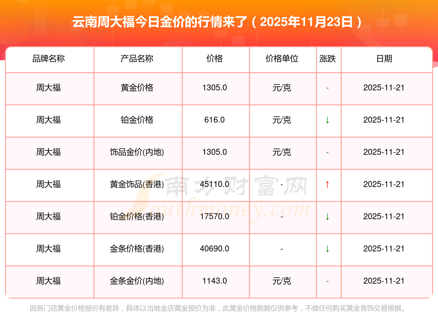 云南周大福金价今日价格最新_云南周大福黄金多少钱一克2025年11月23日,随小编来了解一下详情。