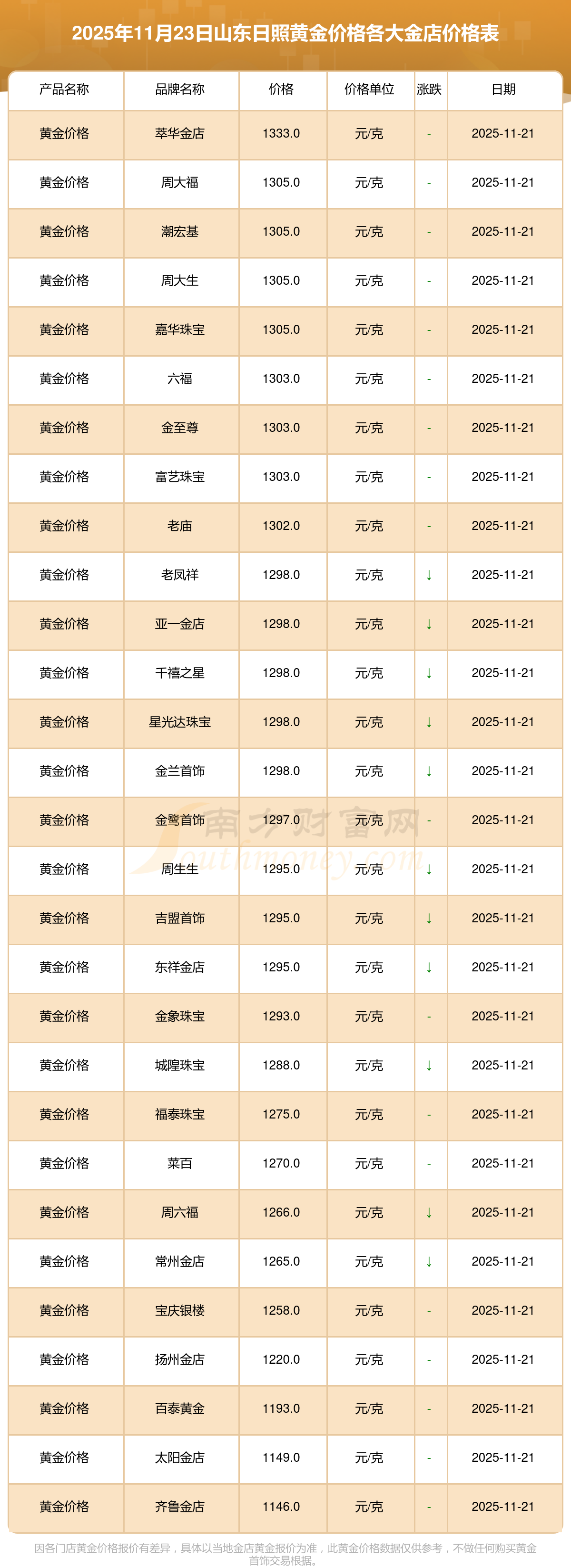 一、 山东日照各金店黄金价格多少钱1克?山东日照各金店黄金价格最新详情
