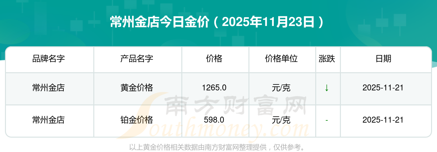 2025年11月23日常州金店金条多少钱1克 现在山西常州金店黄金价格查询