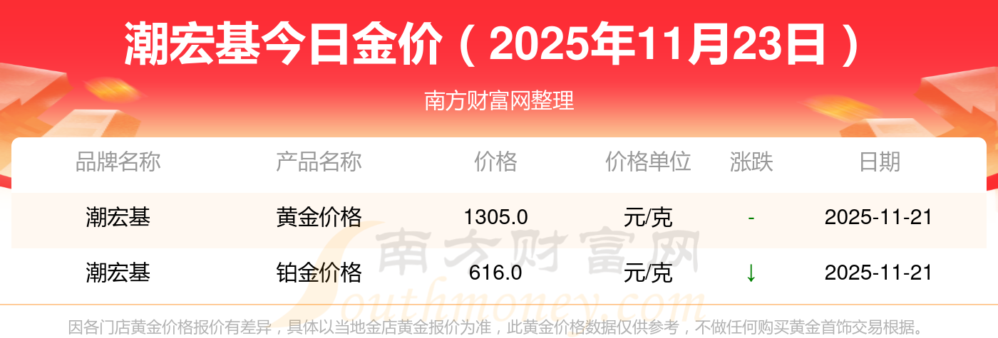 今天是2025年11月23日,周大福、周大福、周大福、周大福、周大福、周大福、周大福、老凤祥、老凤祥、老凤祥、周六福等各大金店品牌黄金价格最新价格如下:周大福1305.0元/克、周大福616.0元/克、周大福1305.0元/克、周大福45110.0、周大福17570.0、周大福40690.0、周大福1143.0元/克、老凤祥1298.0元/克、老凤祥600.0元/克、老凤祥1298.0元/克、周六福1266.0元/克。