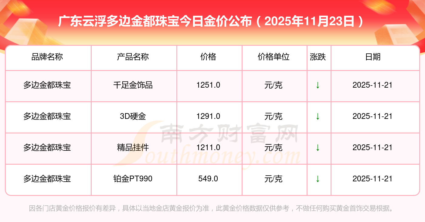广东云浮多边金都珠宝金价今日价格最新_广东云浮多边金都珠宝黄金多少钱一克2025年11月23日,随小编来了解一下详情。