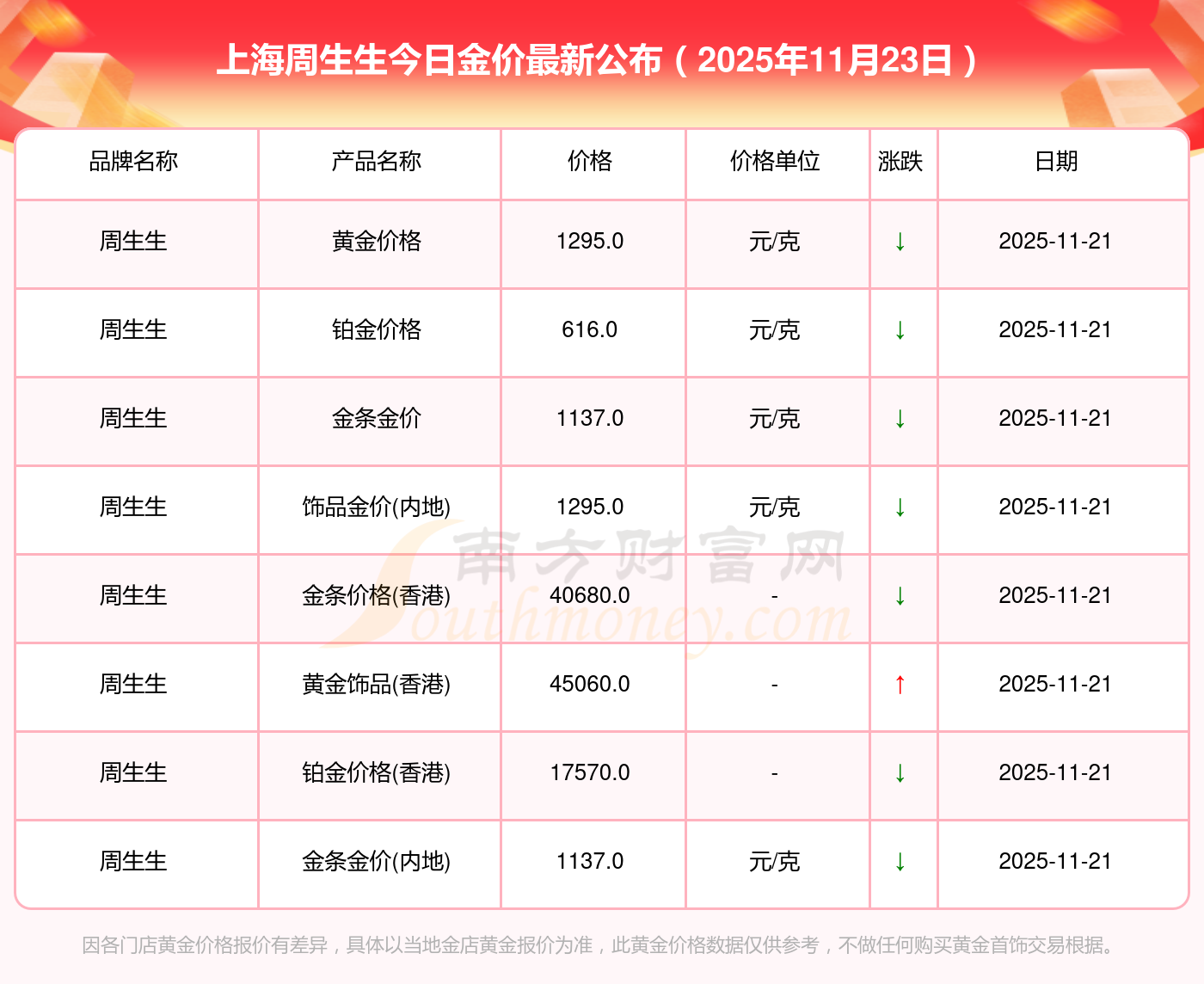 黄金价格1305.0元/克,铂金价格616.0元/克,饰品金价(内地)1305.0元/克,黄金饰品(香港)45110.0,铂金价格(香港)17570.0,金条价格(香港)40690.0,金条金价(内地)1143.0元/克,黄金价格1298.0元/克,铂金价格600.0元/克,足金价格1298.0元/克,黄金价格1266.0元/克。