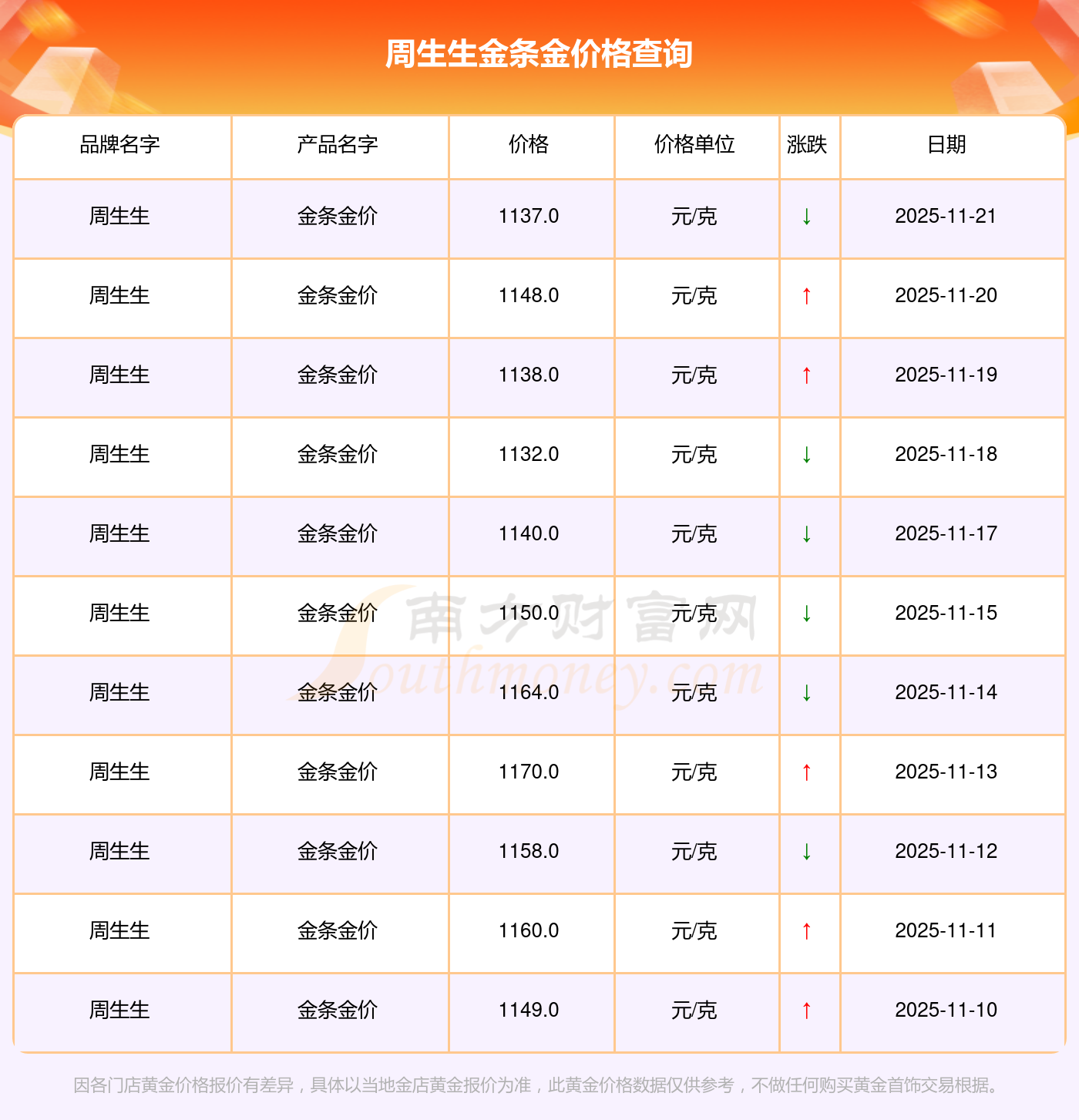 2025年11月23日金条金价今日多少一克_周生生金条金价报价实时行情走势图,一起来看看吧!