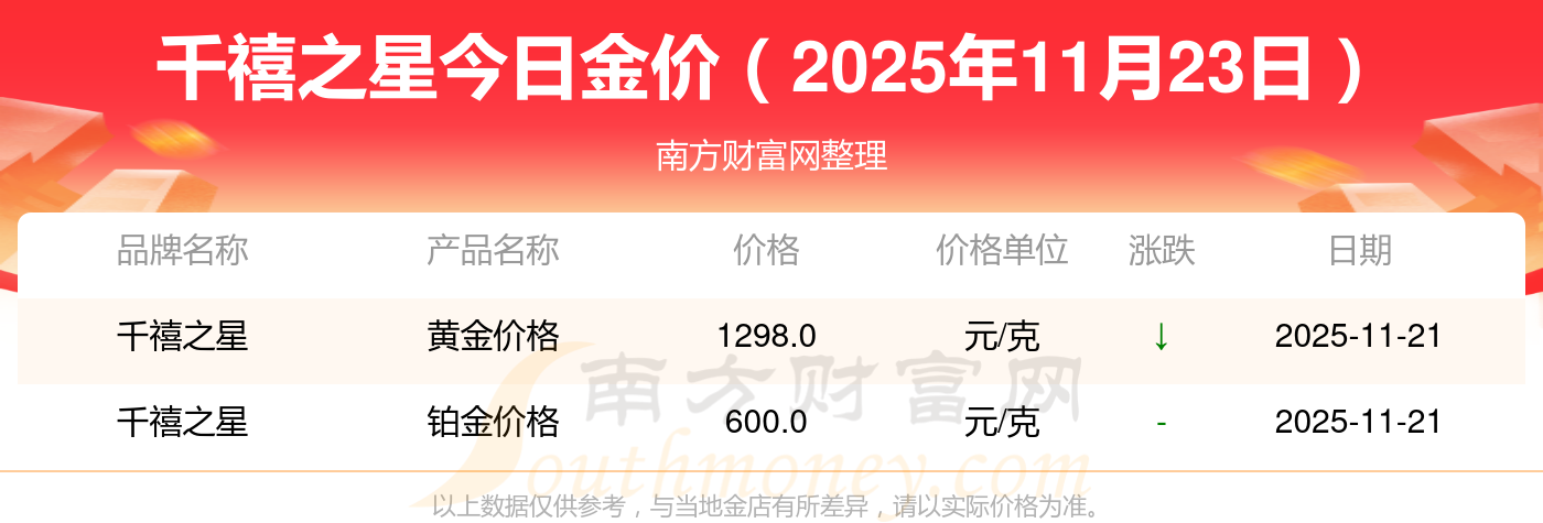 以上数据仅供参考,与当地品牌商、金店、企业及银行营业厅报价有所差异,依产品不同需另附工费,请以实际报价为准。本站对价格等不作任何保证或承诺,请自行核实相关内容,因此所引起的后果与本站无关。
