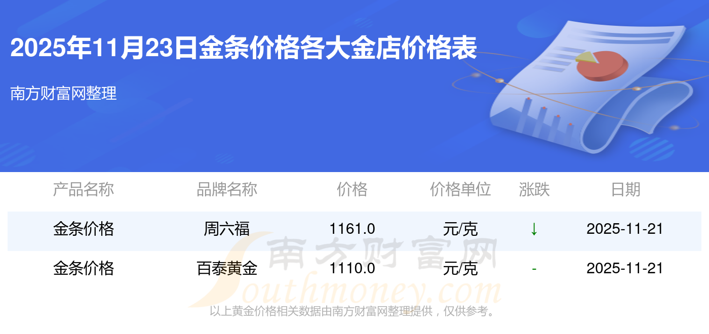 2025年11月23日各金店金条价格表(今日金条价格多少钱一克),随小编来看看。