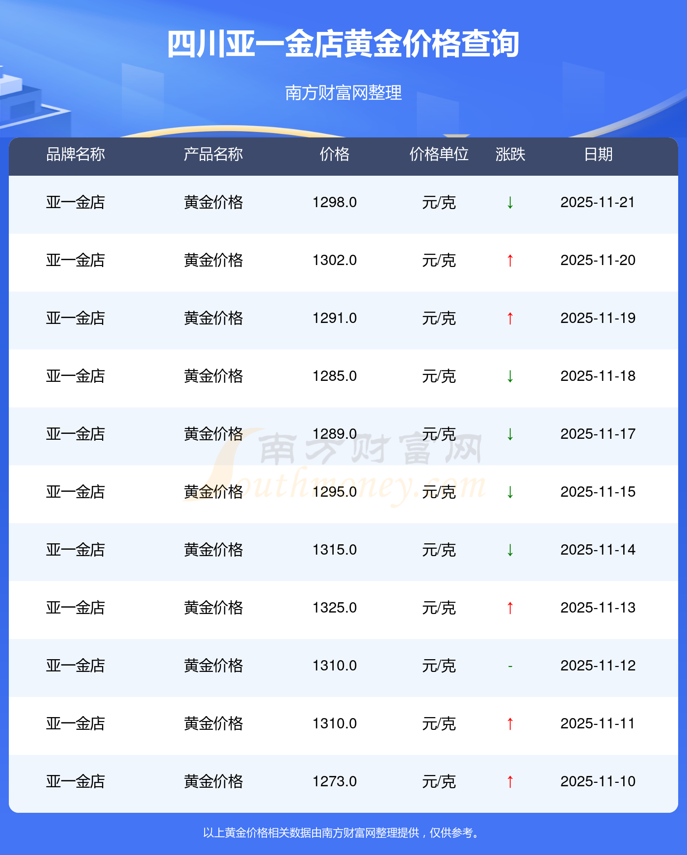 2025年11月23日周大福、周大福、周大福、周大福、周大福、周大福、周大福、老凤祥、老凤祥、老凤祥、周六福等各大金店品牌黄金价格最新价格如下:周大福黄金价格1305.0元/克,周大福铂金价格616.0元/克,周大福饰品金价(内地)1305.0元/克,周大福黄金饰品(香港)45110.0,周大福铂金价格(香港)17570.0,周大福金条价格(香港)40690.0,周大福金条金价(内地)1143.0元/克,老凤祥黄金价格1298.0元/克,老凤祥铂金价格600.0元/克,老凤祥足金价格1298.0元/克,周六福黄金价格1266.0元/克。