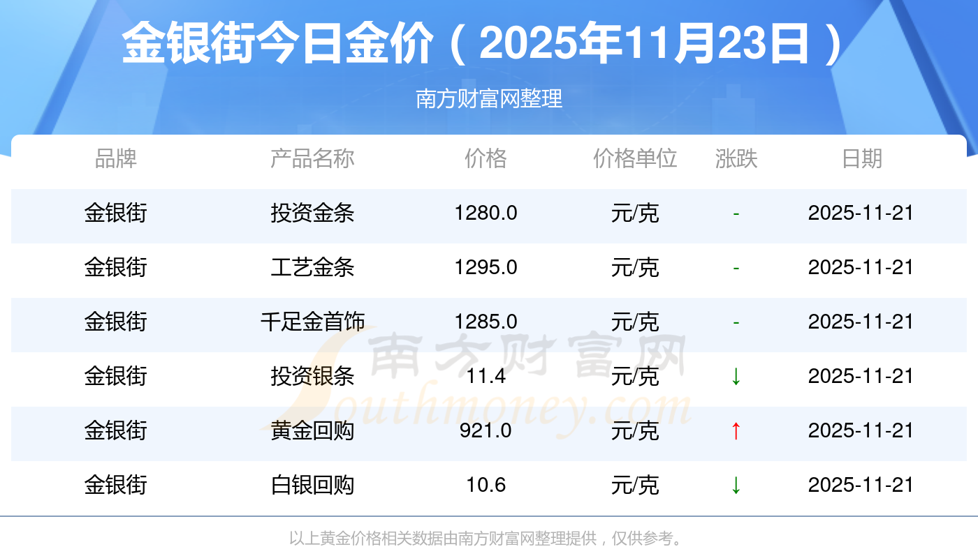 黄金价格1305.0元/克,铂金价格616.0元/克,饰品金价(内地)1305.0元/克,黄金饰品(香港)45110.0,铂金价格(香港)17570.0,金条价格(香港)40690.0,金条金价(内地)1143.0元/克,黄金价格1298.0元/克,铂金价格600.0元/克,足金价格1298.0元/克,黄金价格1266.0元/克。