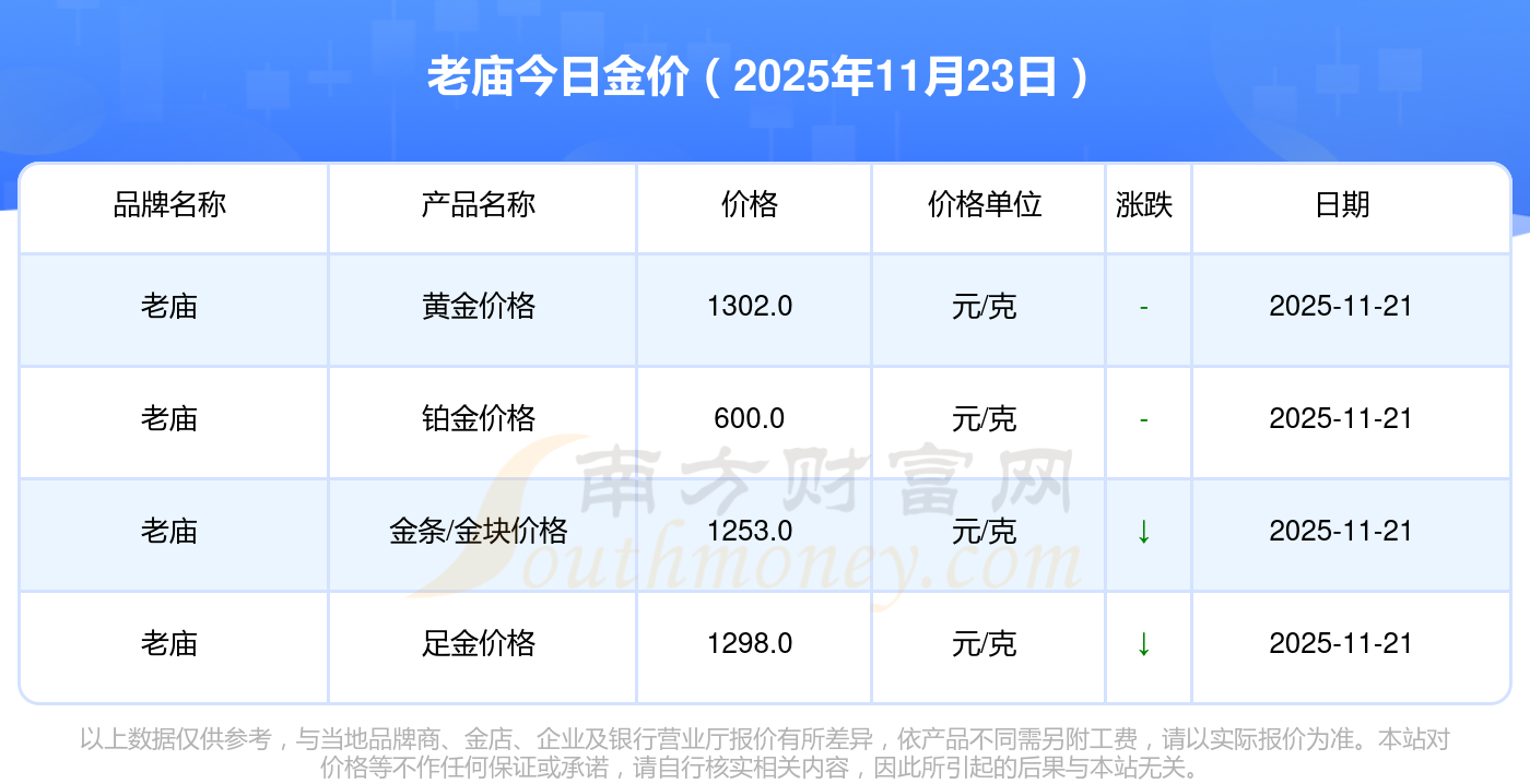 黄金价格1305.0元/克,铂金价格616.0元/克,饰品金价(内地)1305.0元/克,黄金饰品(香港)45110.0,铂金价格(香港)17570.0,金条价格(香港)40690.0,金条金价(内地)1143.0元/克,黄金价格1298.0元/克,铂金价格600.0元/克,足金价格1298.0元/克,黄金价格1266.0元/克。