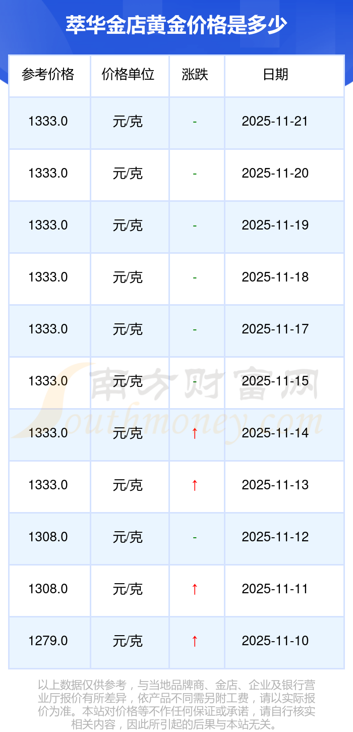 今日黄金价格是怎样的?当下黄金一克要卖多少钱?黄金是优良的导电导热材料,有着良好的导热特性。电子工业中的特殊电路设计常使用它,原因在于它化学稳定性高、抗氧化性强,可制作高精度电子元件。今日萃华金店黄金价格最新查询:1333.0元/克。