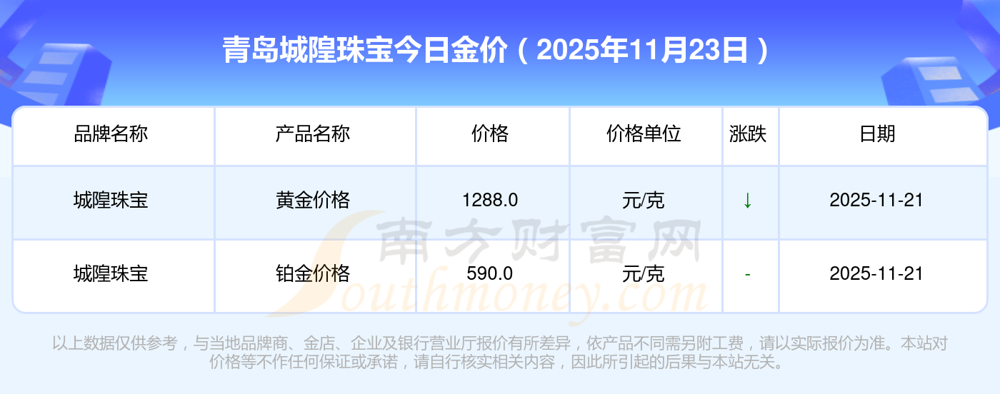 2025年11月23日城隍珠宝金条多少钱1克 现在青岛城隍珠宝黄金价格查询