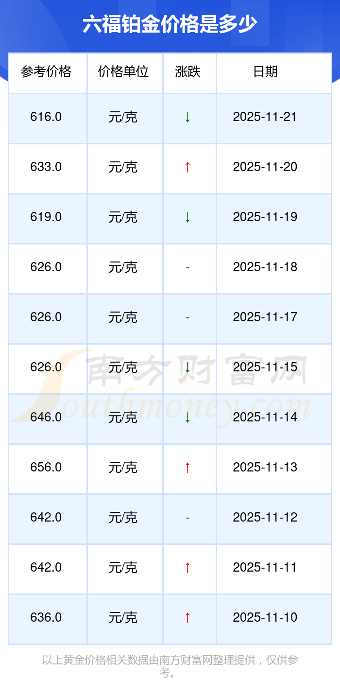 以上数据仅供参考,与当地品牌商、金店、企业及银行营业厅报价有所差异,依产品不同需另附工费,请以实际报价为准。本站对价格等不作任何保证或承诺,请自行核实相关内容,因此所引起的后果与本站无关。
